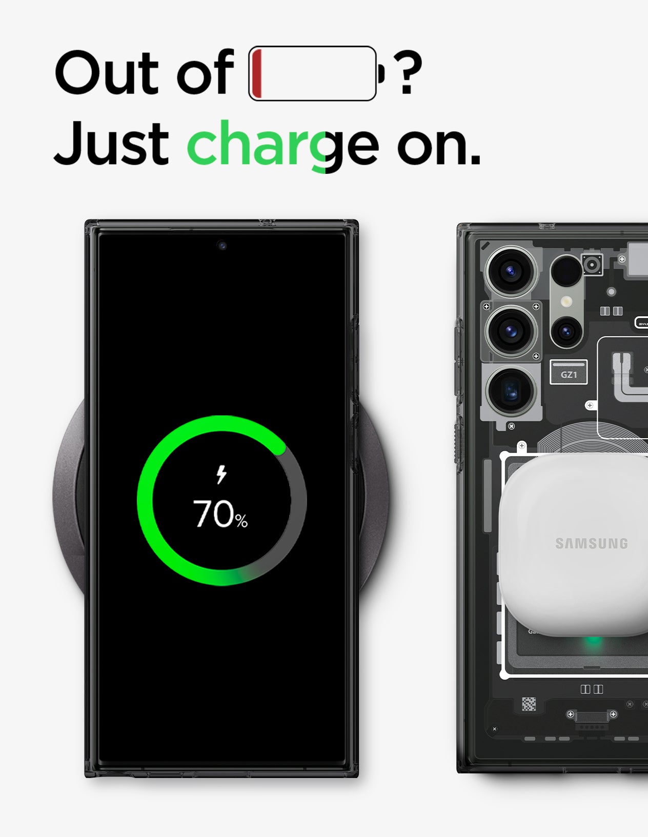We know it’s a hassle to take the case off. So, simply charge on