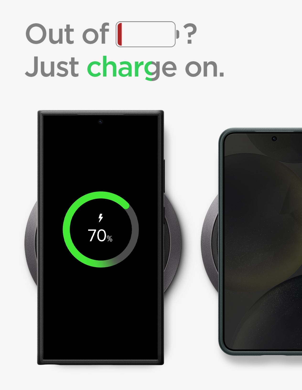 We know it’s a hassle to take the case off. So, simply charge on with the case on. Spigen cases are compatible with wireless charger.