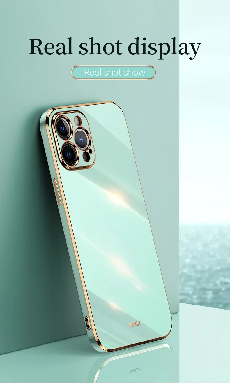Luxury Solid Color Silicone Soft Case For IPhone 15 14 11 12 13 Pro Max Mini Plus Square Plating Glossy Shockproof Protect Cover