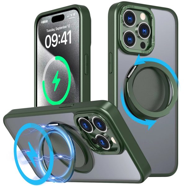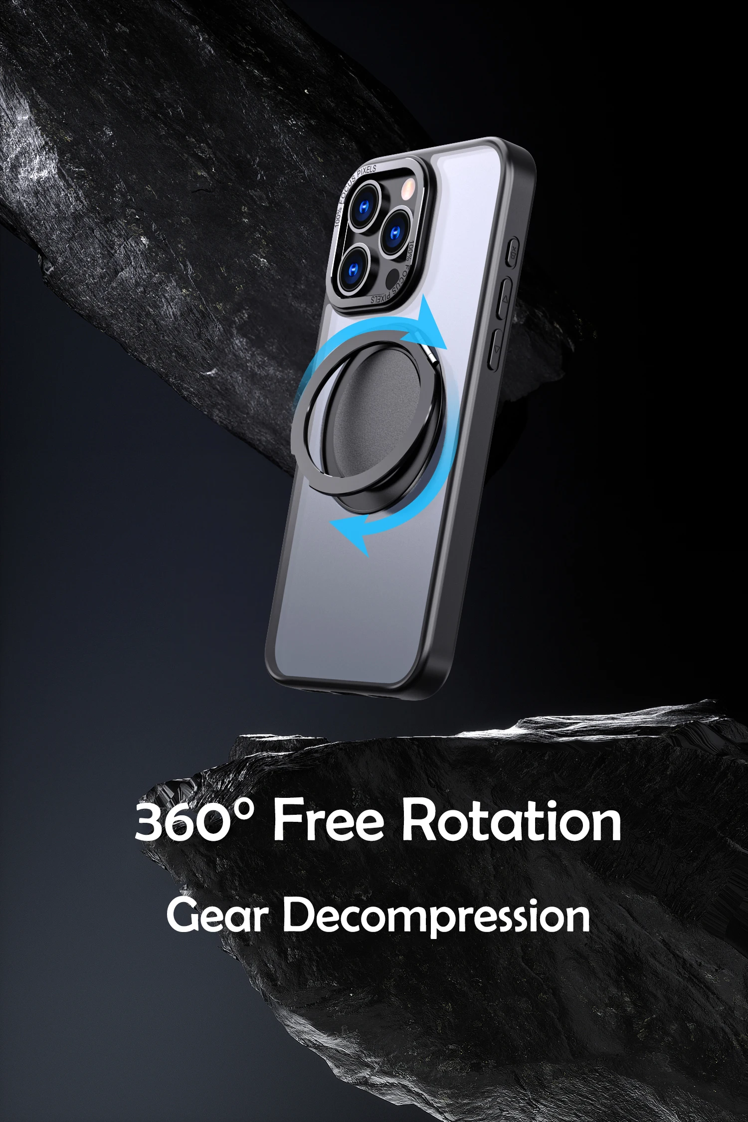 Magsafe Magnetic Holder Phone Case For iPhone 12 13 14 15 Pro Max Plus Gear Decompression Shell 360° Rotating Stand Matte Cover
