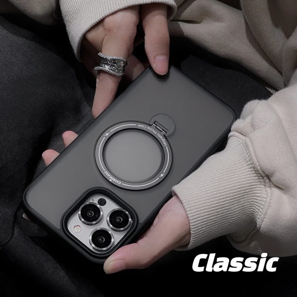 Metal Lens Ring Camera Glass Protection Phone Case For iPhone 15 14 13 11 12 Pro Max Plus Magnetic Magsafe Rotating Stand Cover