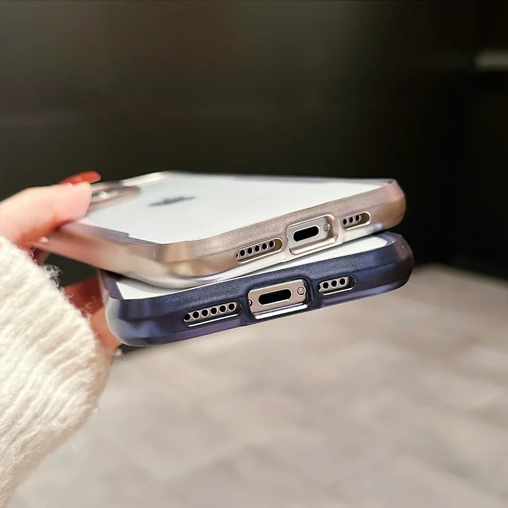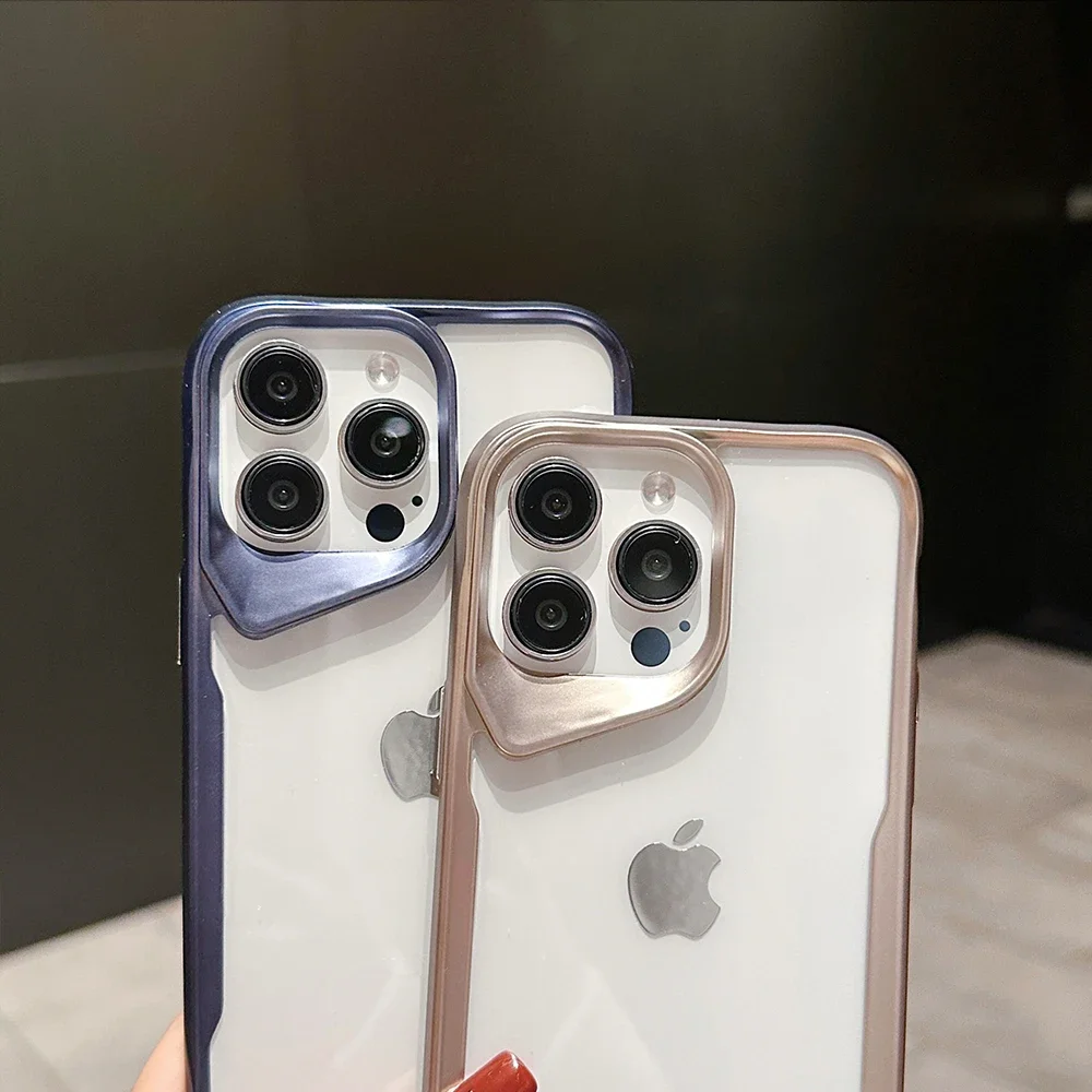 Plating Soft Frame Transparent Phone Case For iPhone 14 12 14 15 Pro Max 15Plus Electroplating Lens Protection Shockproof Cover