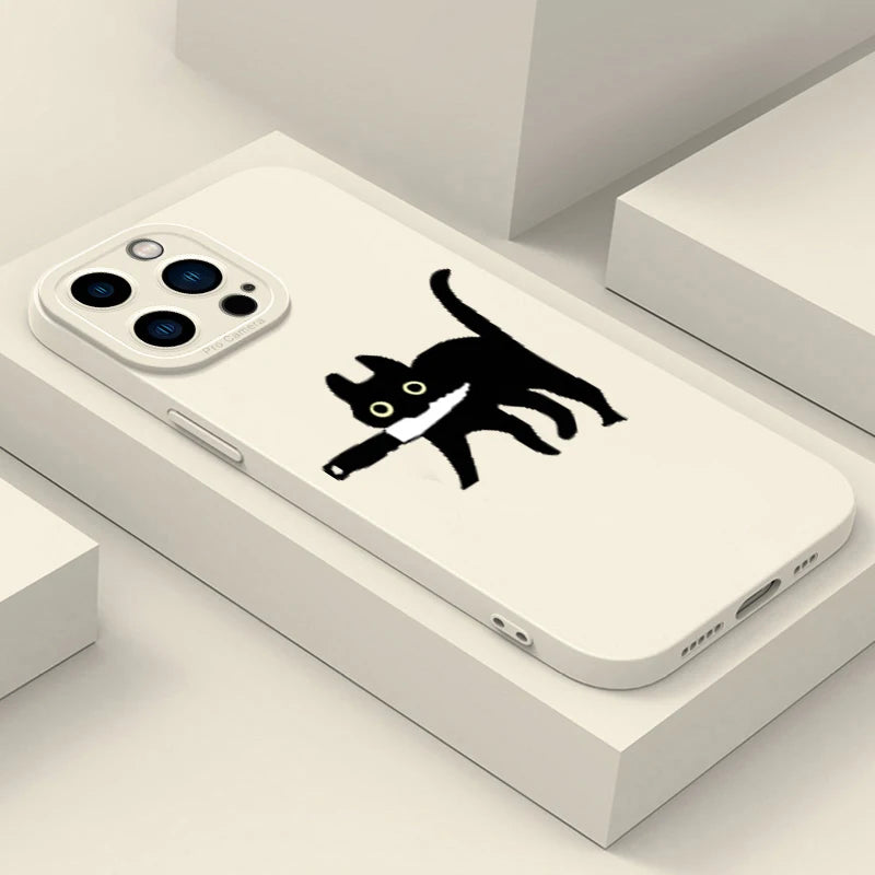 Simple Cat Pattern Phone Case For iPhone 11 12 13 14 Pro Max XS XR X 7 8 Plus SE 2020 Mini Shockproof Matte Soft Silicone Cover